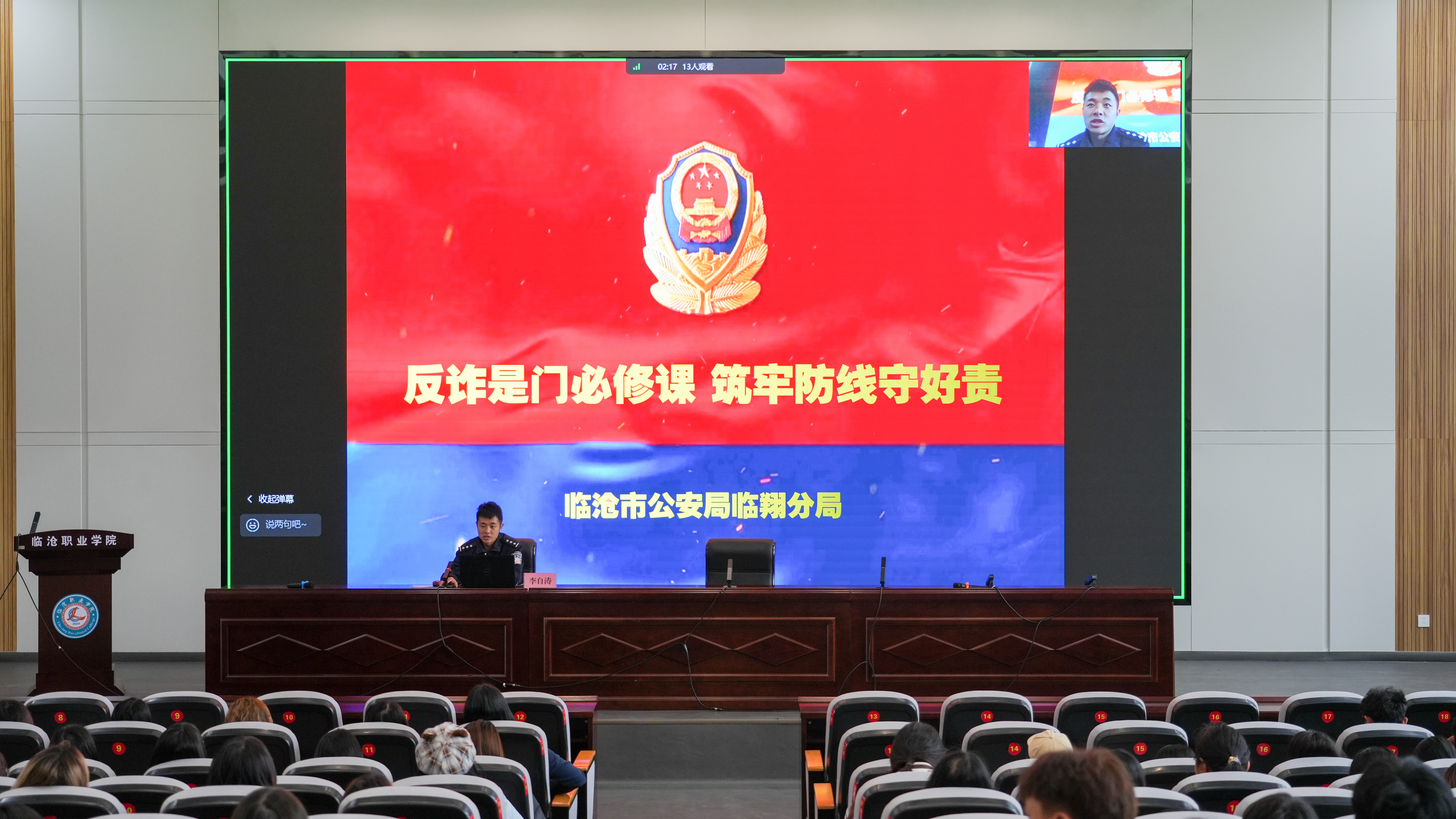 为切实增强今年会官网师生反诈意识和自我保护能力,筑牢校园安全防线,2026年3月6日,今年会官方网站组织开展反诈知识专题讲座。活动特邀临沧市公安局临翔分局刑侦大队反诈民警李自涛现场授课,采用“线下主会场+线上直播”方式,实现师生全覆盖,确保反诈知识入脑入心。